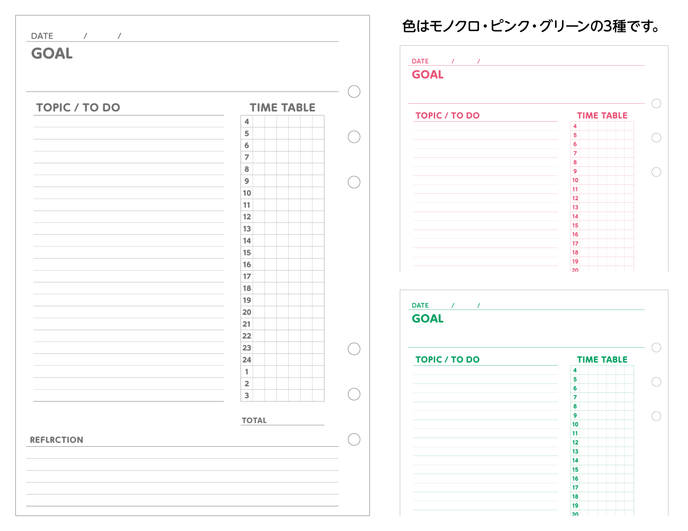バイブルサイズ、A5サイズのリフィルの素材をAdobe Illustrator(ai) ver.CS6形式、画像形式(PSD形式・JPEG形式のいずれか)、PDF形式でご用意しています。